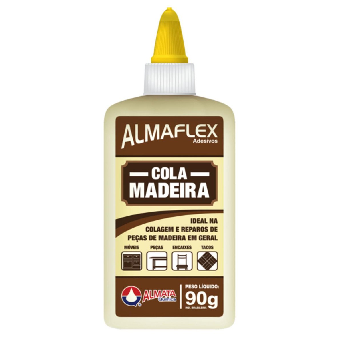 Cola para madeira Almaflex é ideal para colagens e reparos de móveis, encaixes, tacos, montagem de conjuntos de madeira e aplicações de laminação a frio.